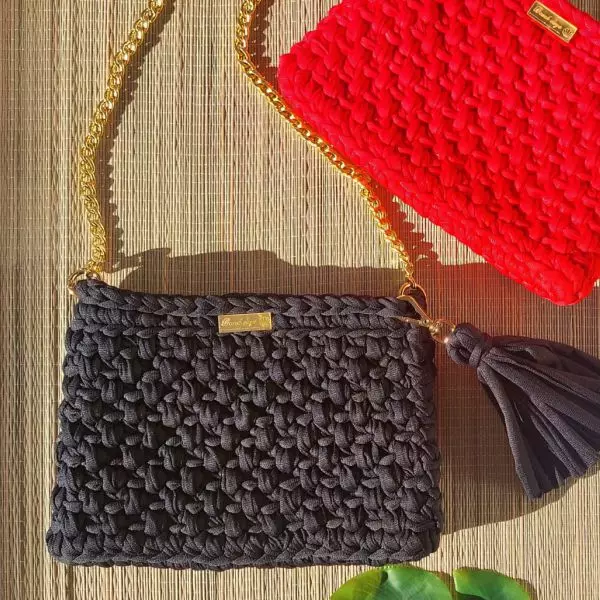 clutch Ariel é exclusiva , feita totalmente a mão com matérias de exelente qualidade . Em crochê perfeita para qualquer ocasião, acompanha alça .